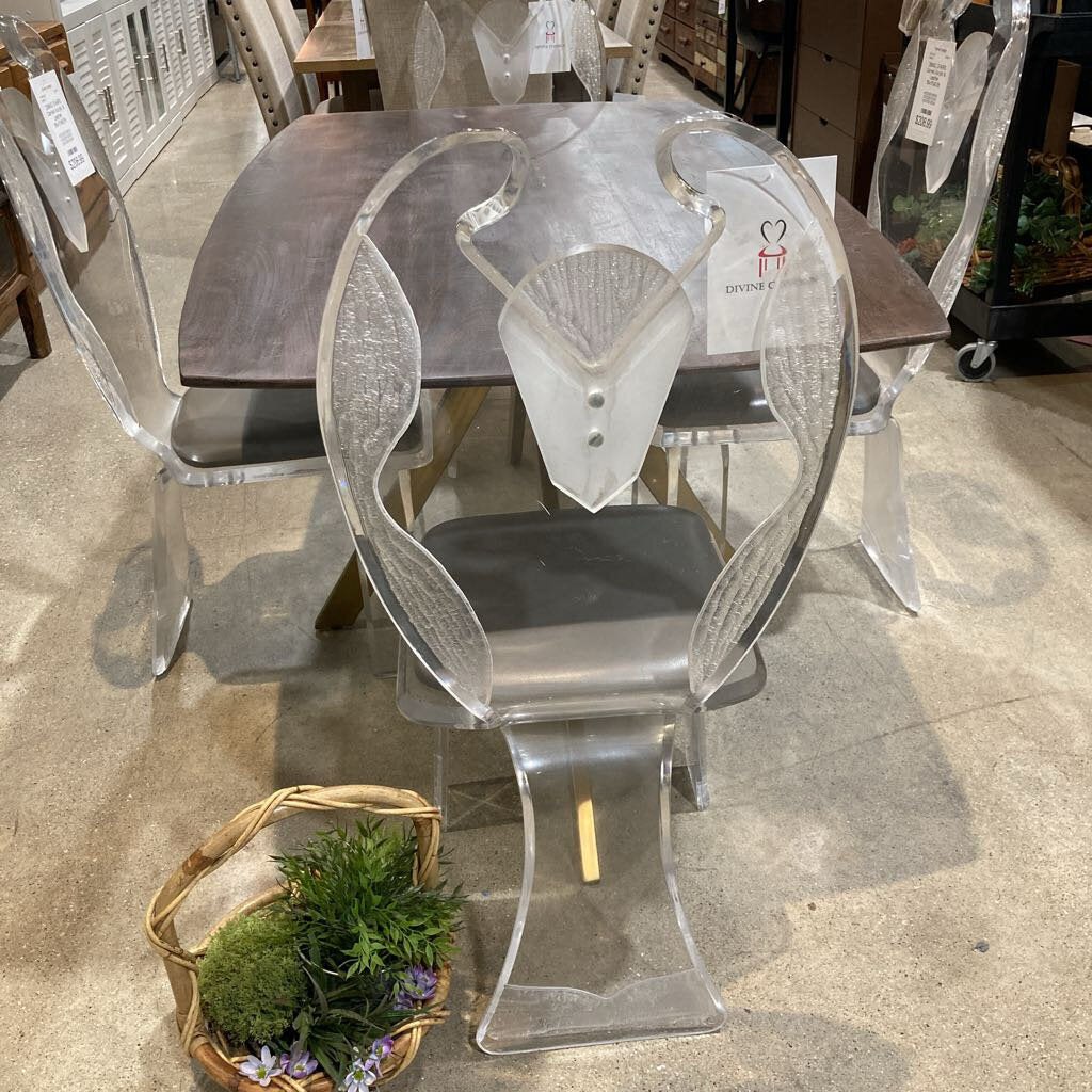 Carved Acrylic & Leather DINING CHAIRS 16w17d40.5h