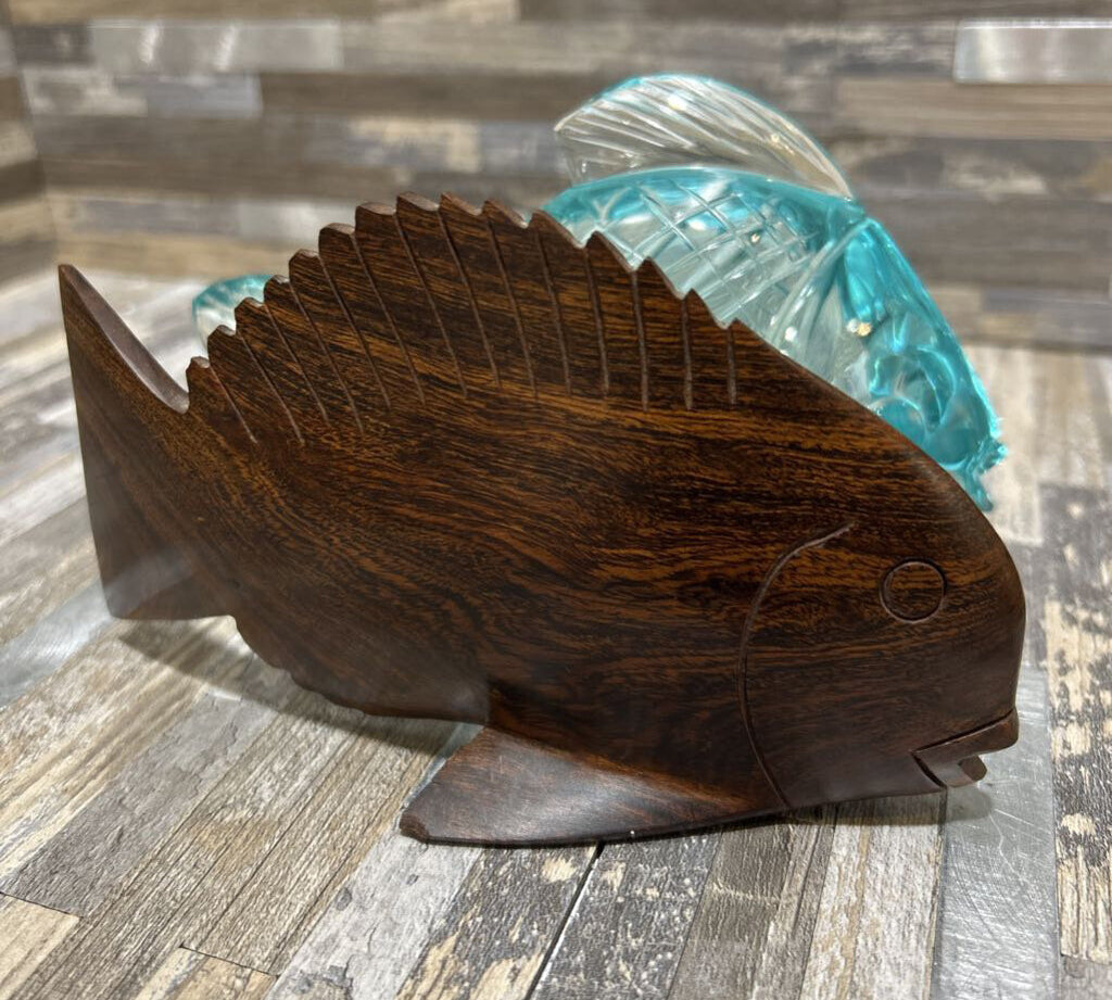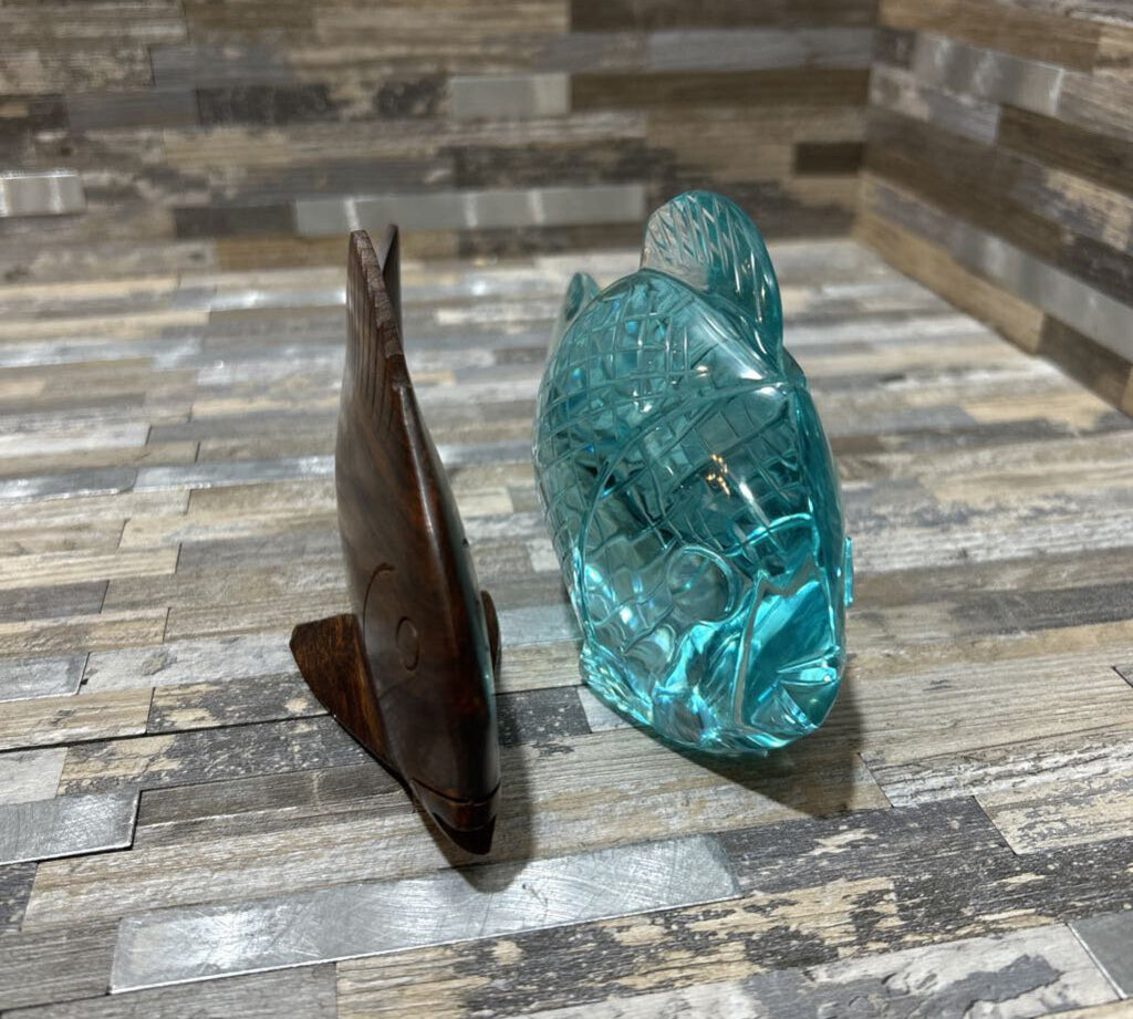 2pc Set Wood & Glass Fish Paperweights ACCESSORIES 1.5w6d3h