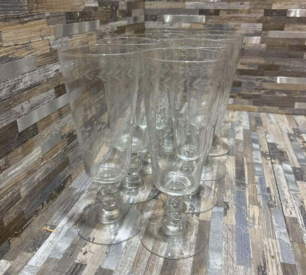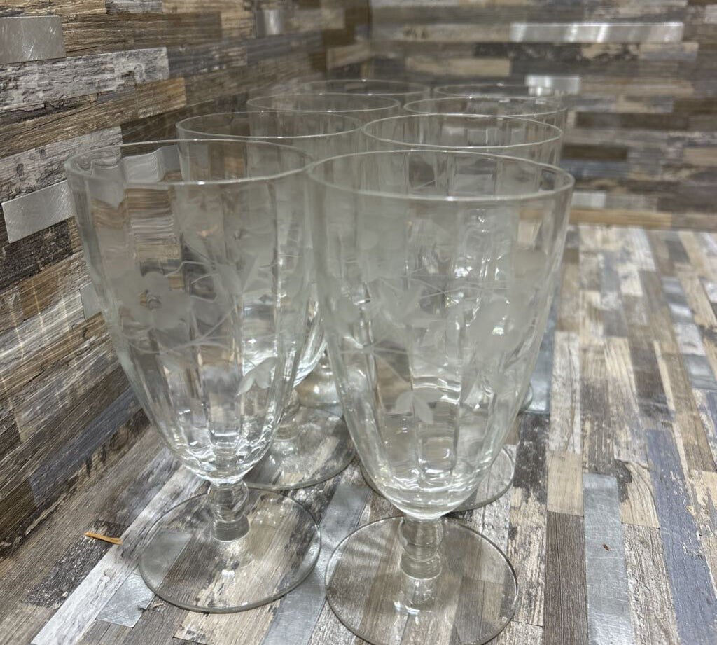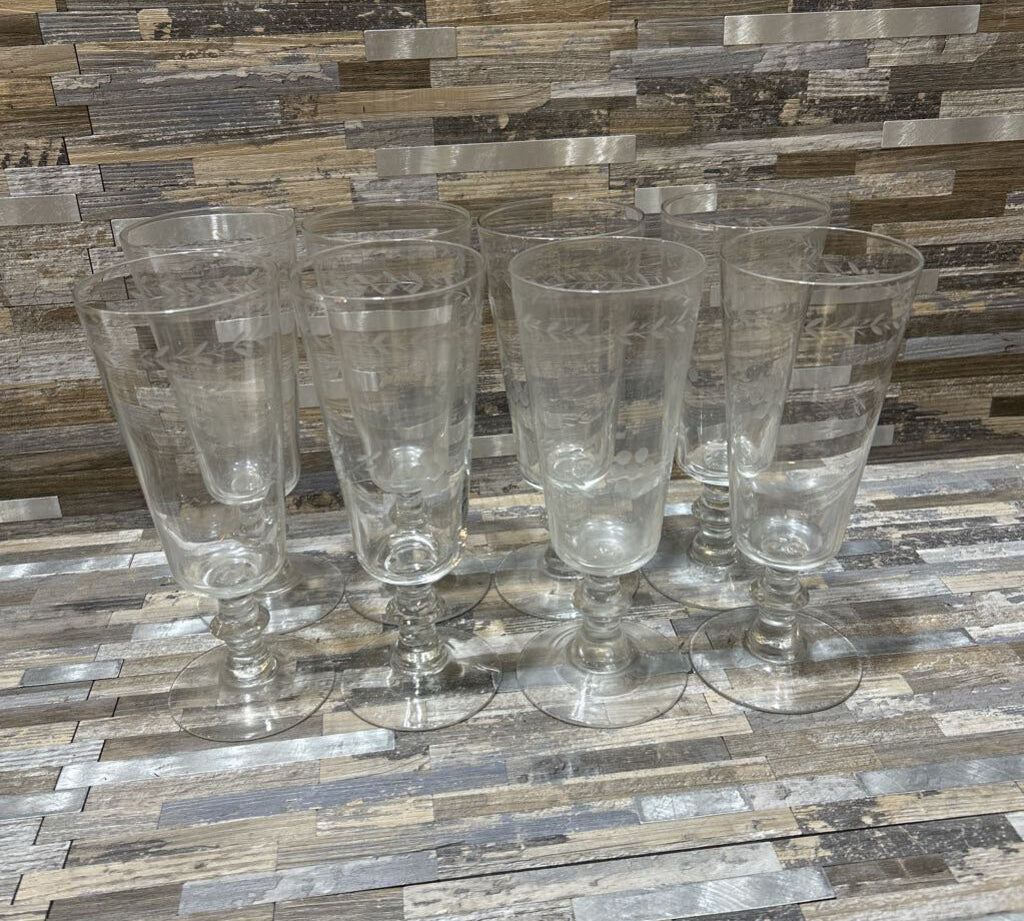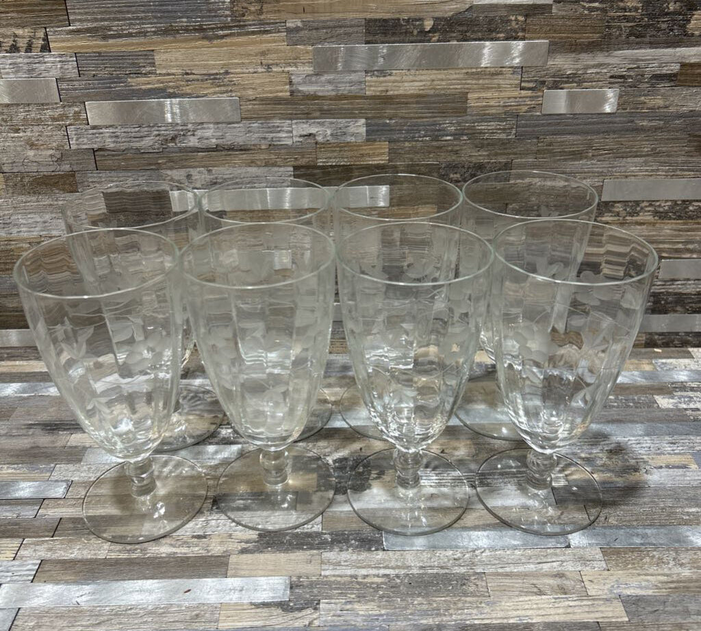 Princess House 8pc Set Etched Glasses ACCESSORIES 3.5d5.5h