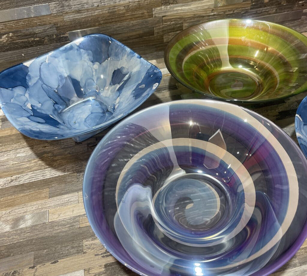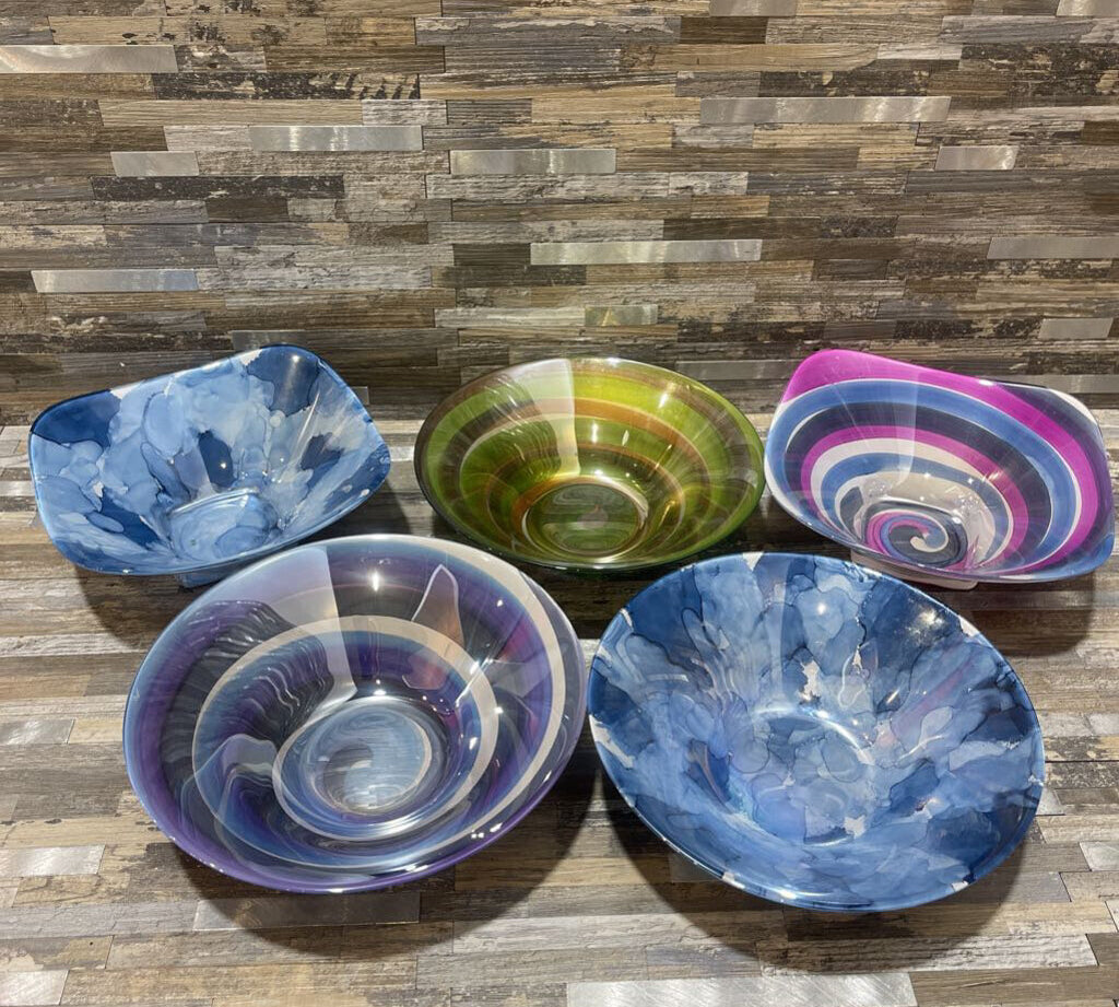 Set pf 5 Colorful Reverse Painted Glass Bowls ACCESSORIES 8Wx2.5H