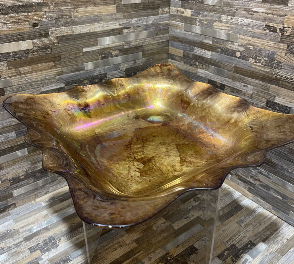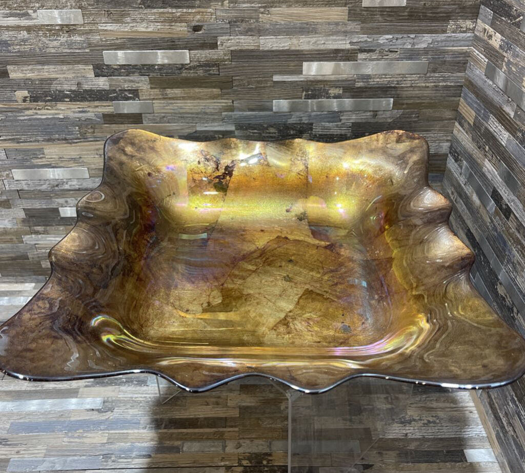 Reverse Painted Wavy Edge Glass Platter ACCESSORIES 14Wx3H