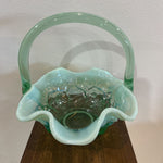 Fenton Opalescent Lily Art Glass Basket ACCESSORIES Green 6Wx6.5H