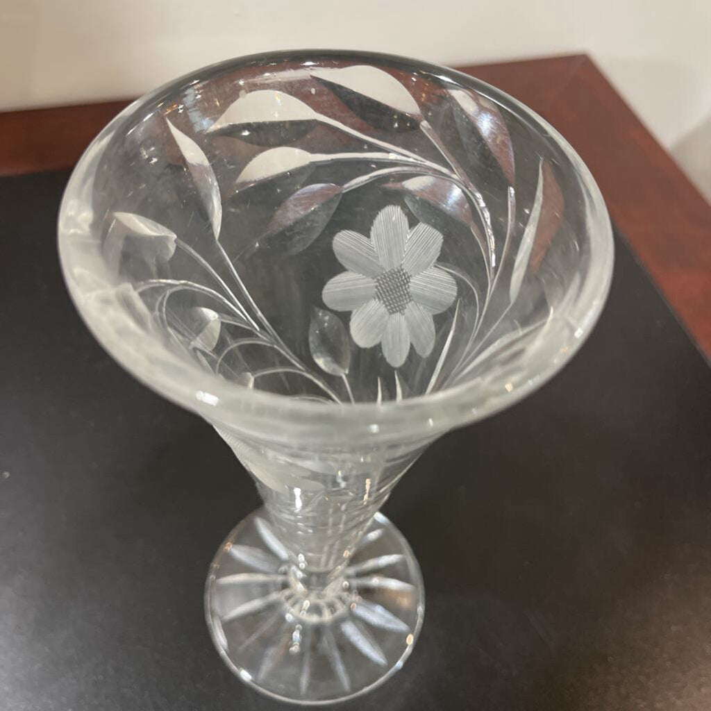 Floral Etched Glass Footed Vase ACCESSORIES 4Wx8H