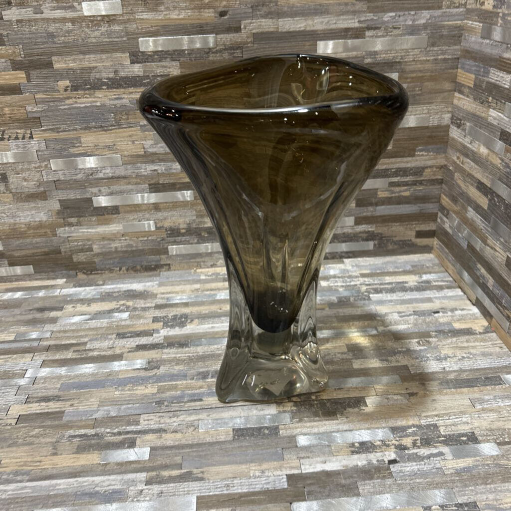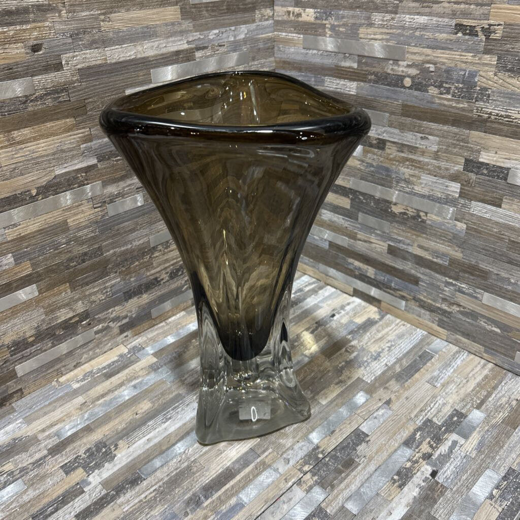 John Richard Abstract Brown Handblown Glass Vase ACCESSORIES 8d13.5h