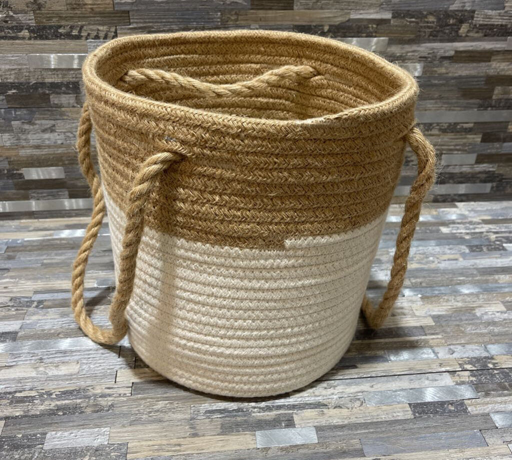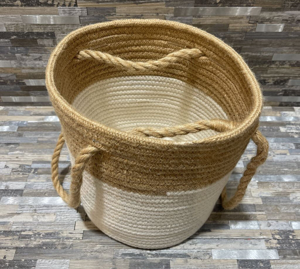 Woven Bucket Basket w/ Burlap Handles ACCESSORIES 9Wx9.5H base