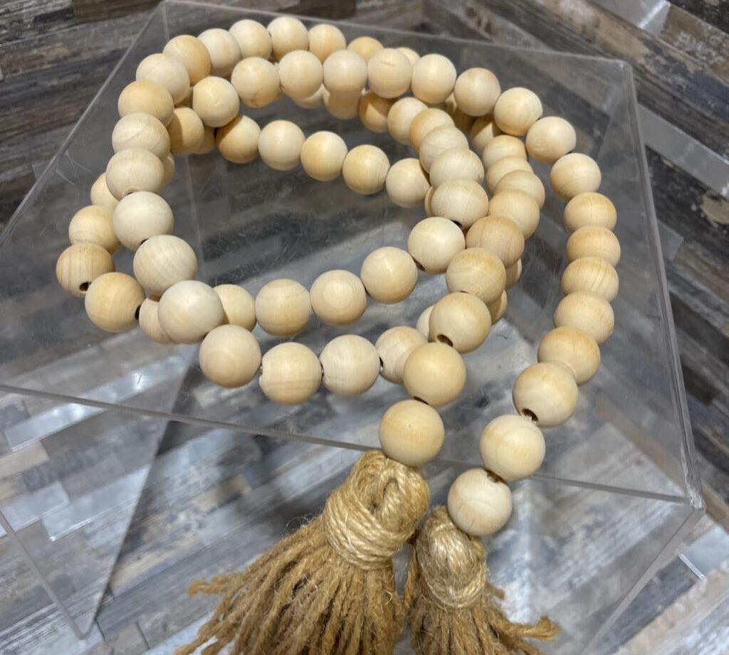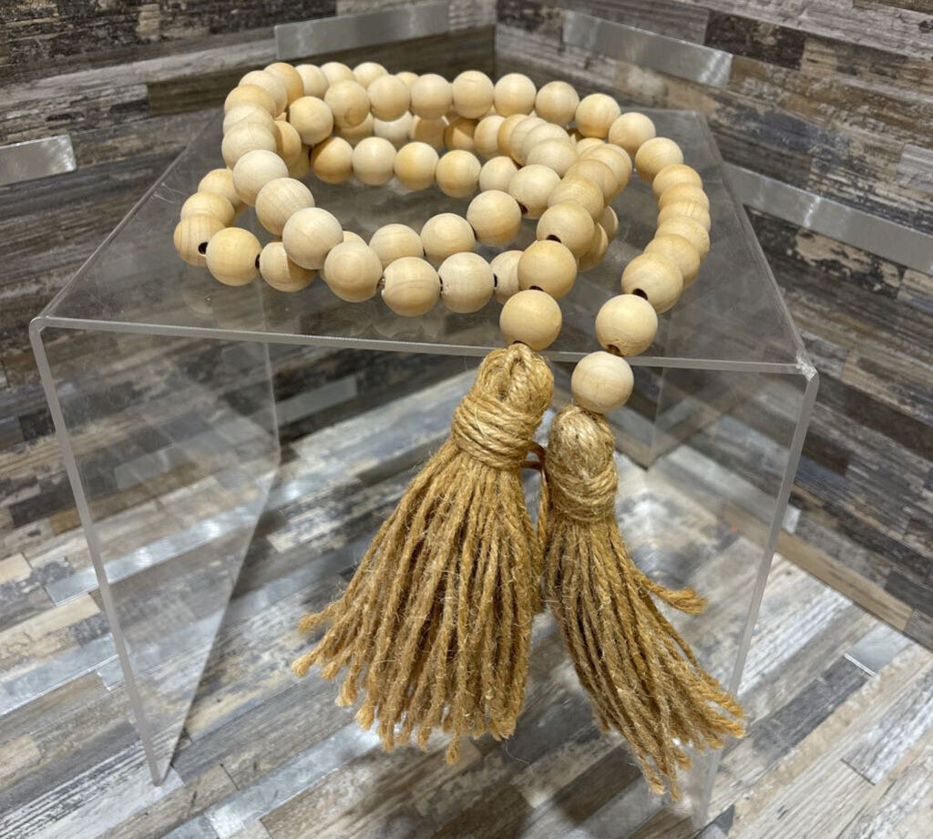 Wood Beads w/ Burlap Tassel Ends ACCESSORIES 60"