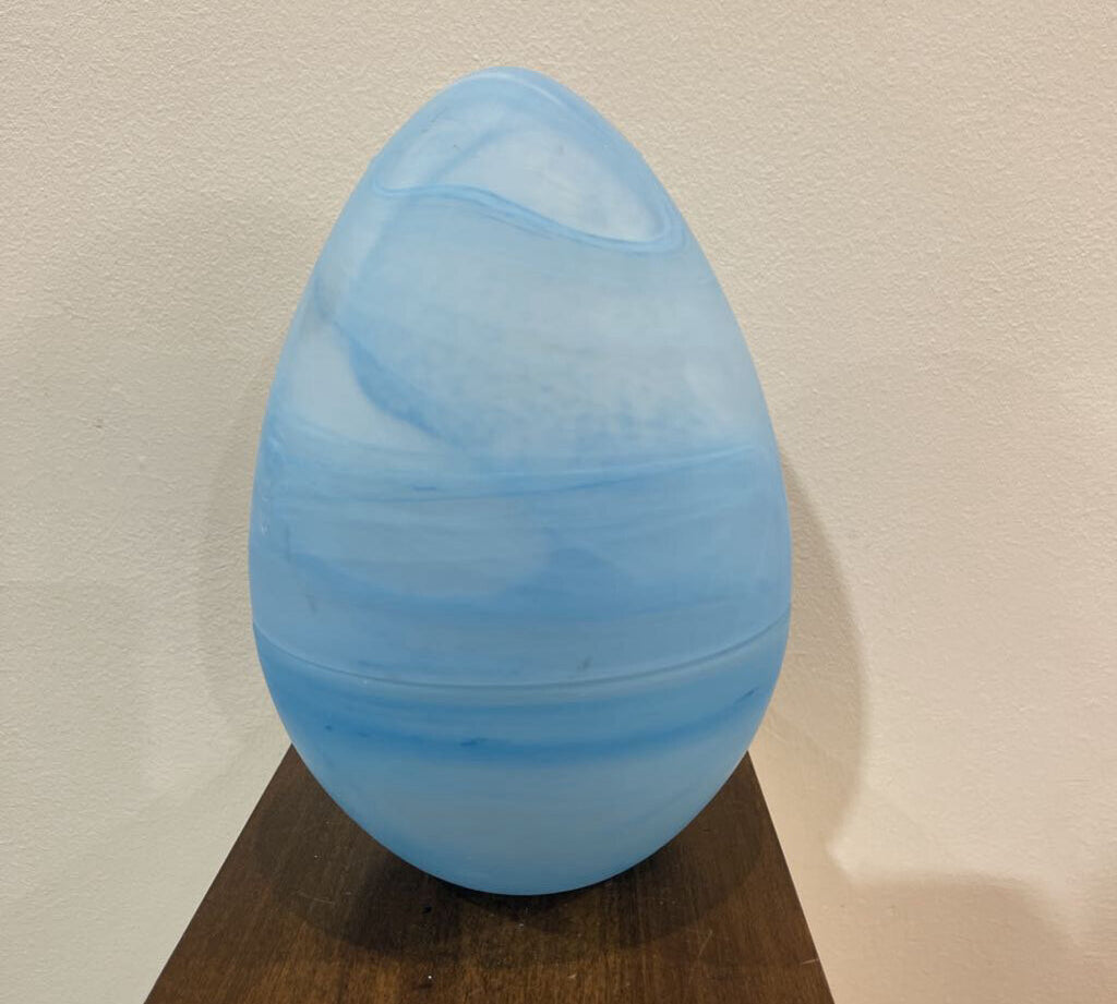 Frosted Art Glass Lidded Egg Bowl ACCESSORIES Blue 5Wx8H