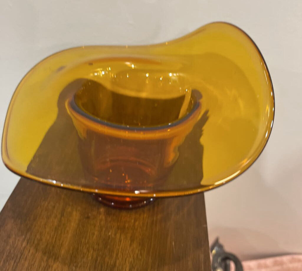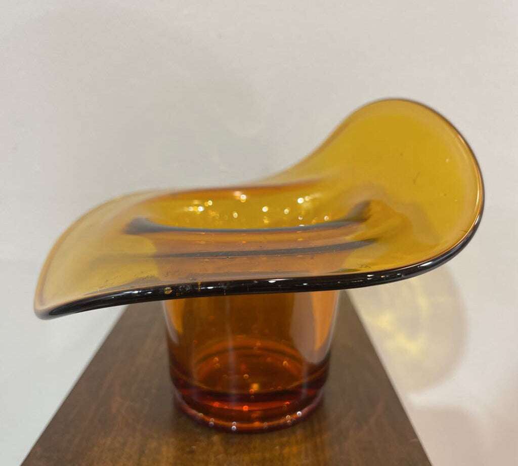 Amber Art Glass Top Hat Shaped Vase ACCESSORIES 6Wx5H