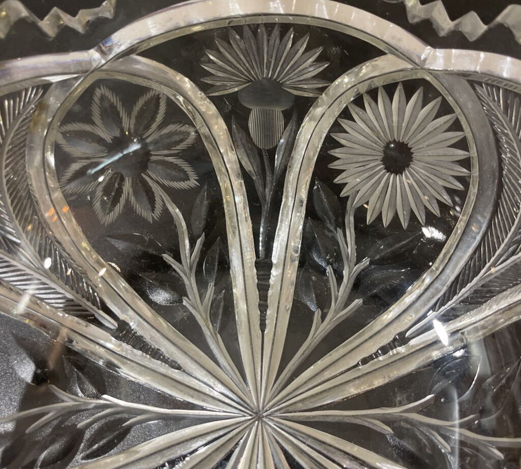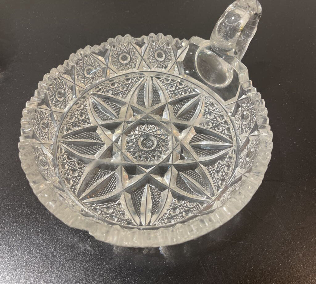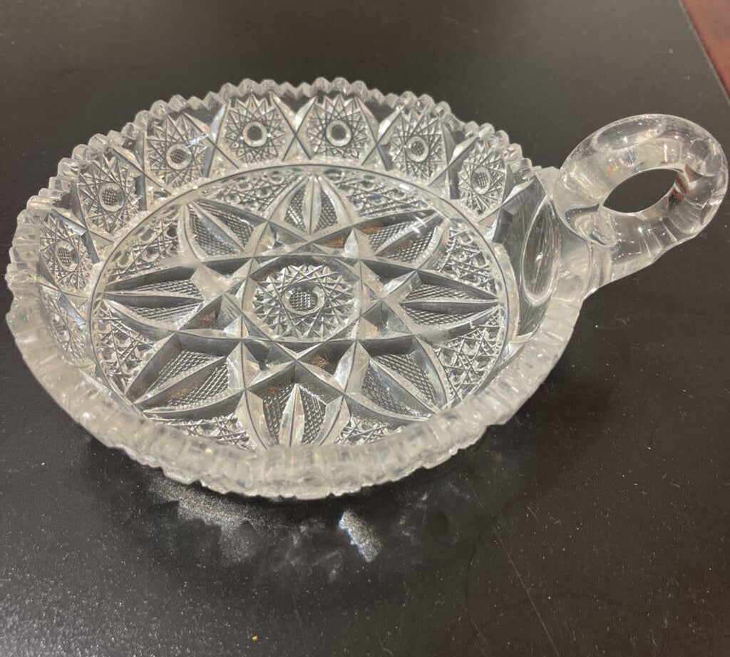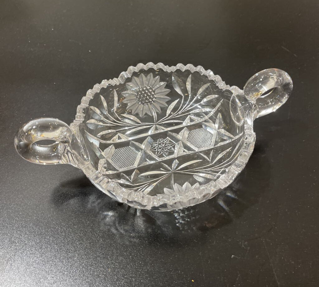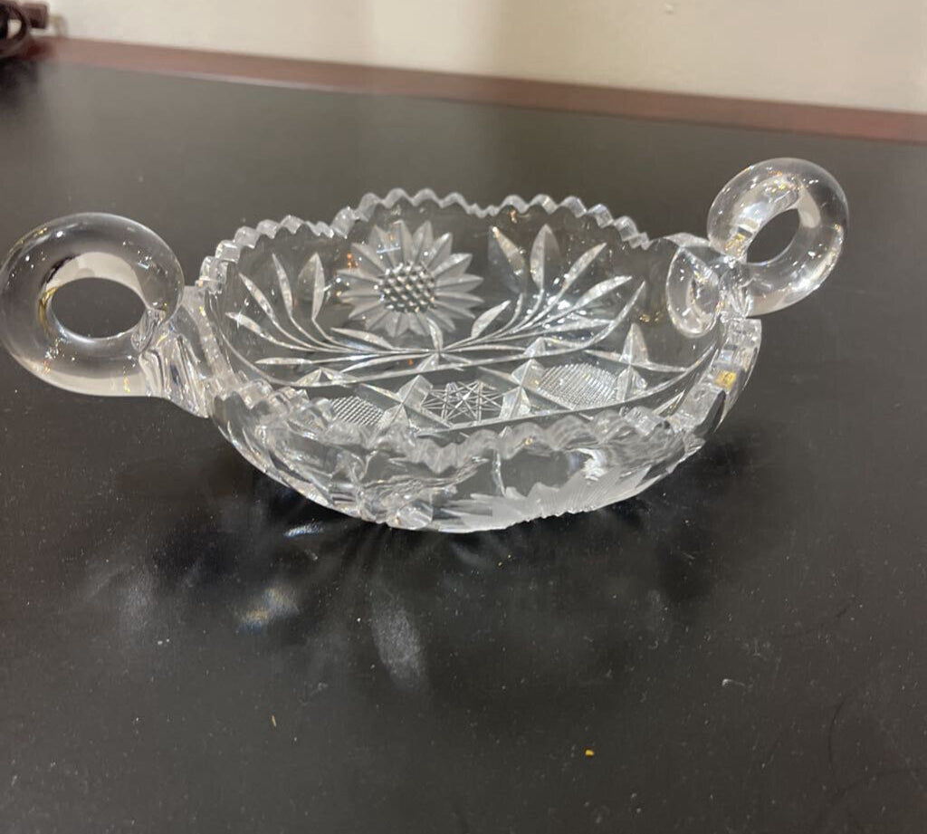 American Cut Crystal Dish w/ Applied Handle ACCESSORIES 6Wx2.5H