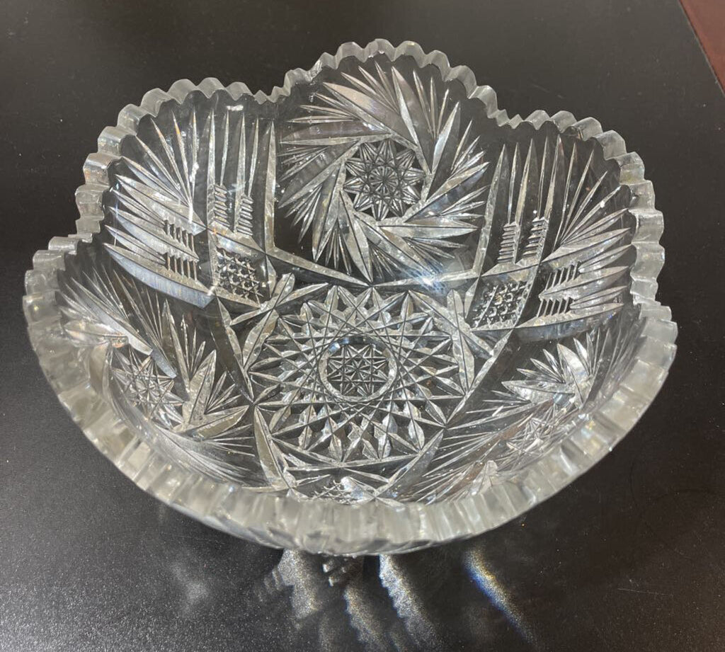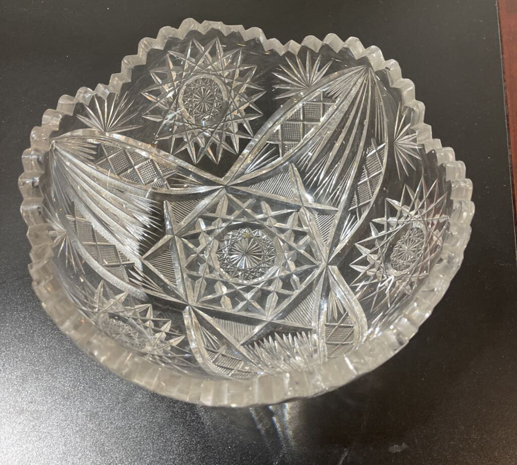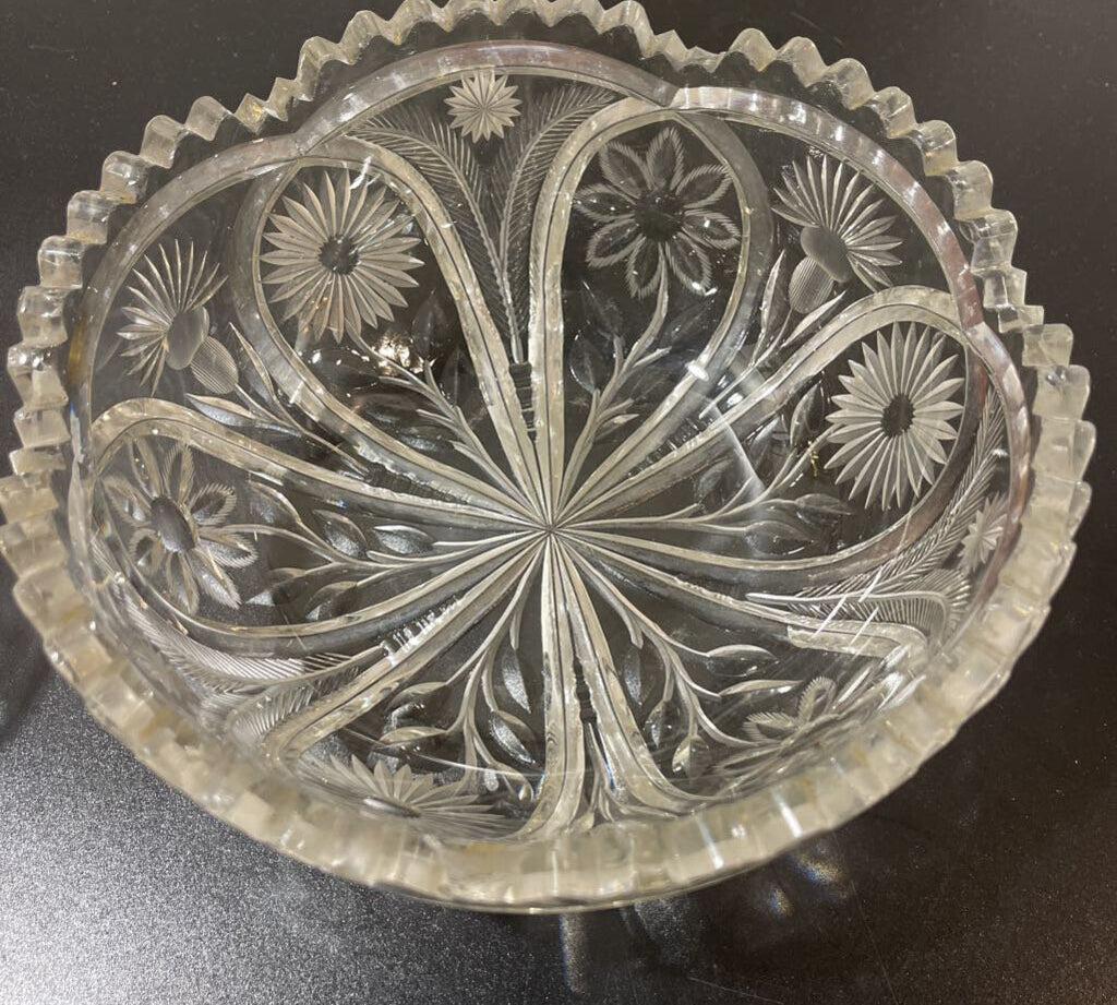 Antique American Brilliant Period Crystal Bowl ACCESSORIES 9Wx4H