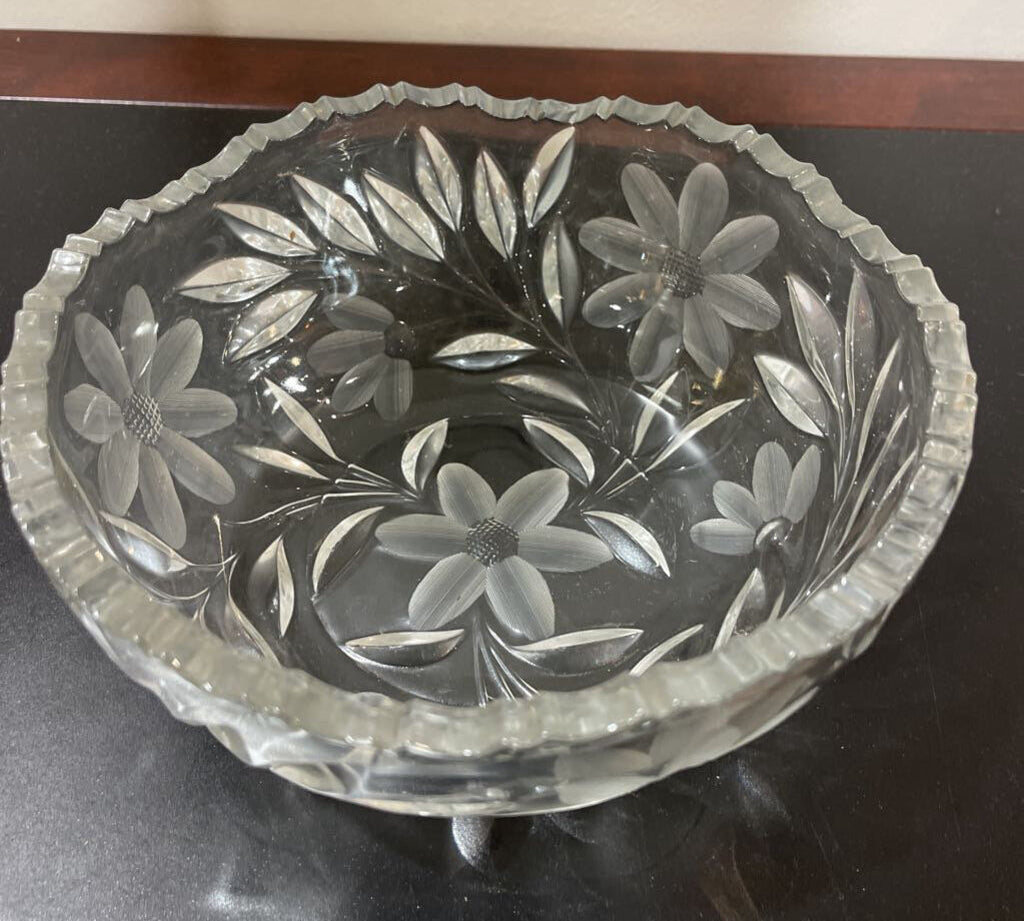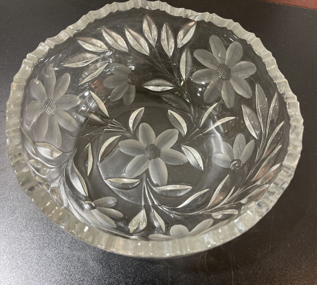 Vintage Cut Etched Floral Glass Bowl ACCESSORIES 8.5Wx3.5H