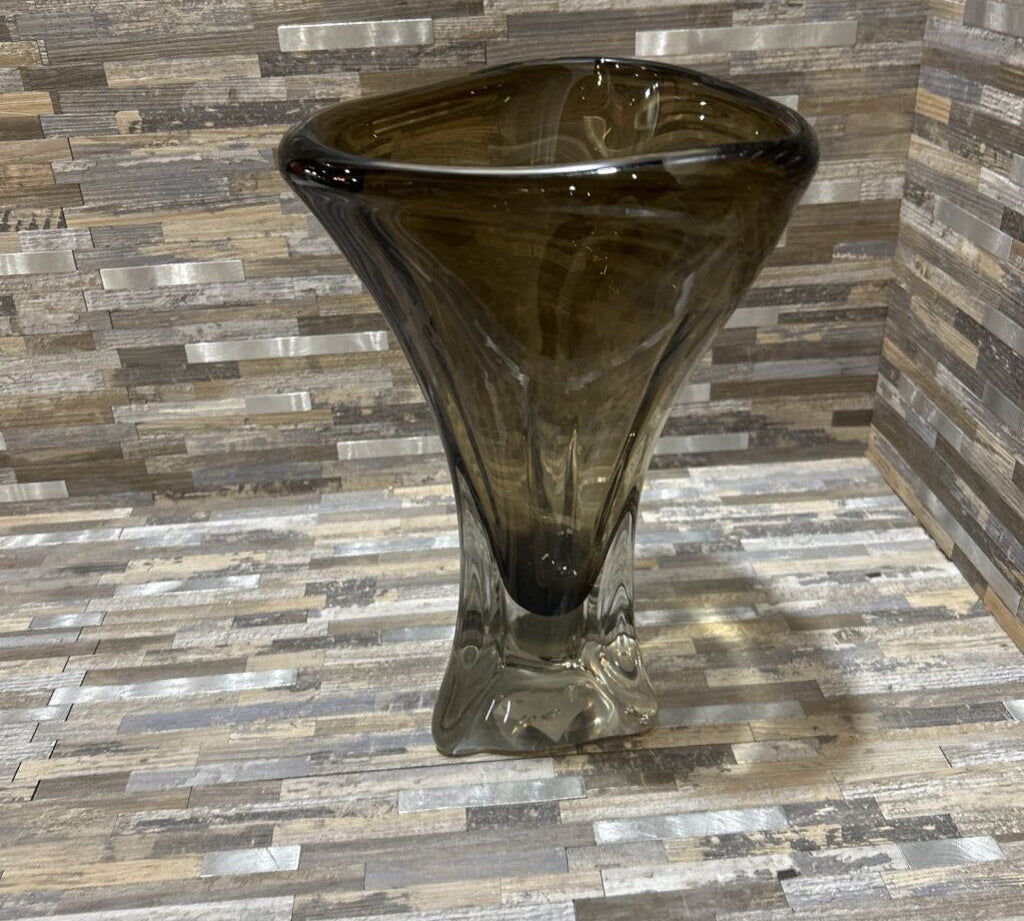 John Richard Abstract Brown Handblown Glass Vase ACCESSORIES 8d13.5h