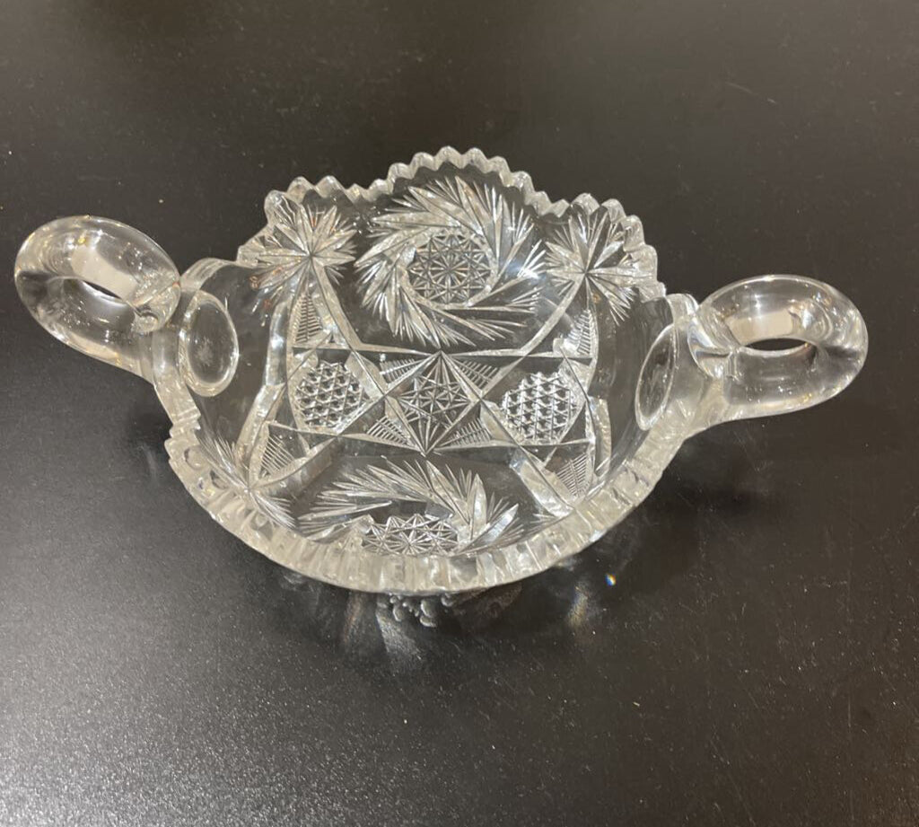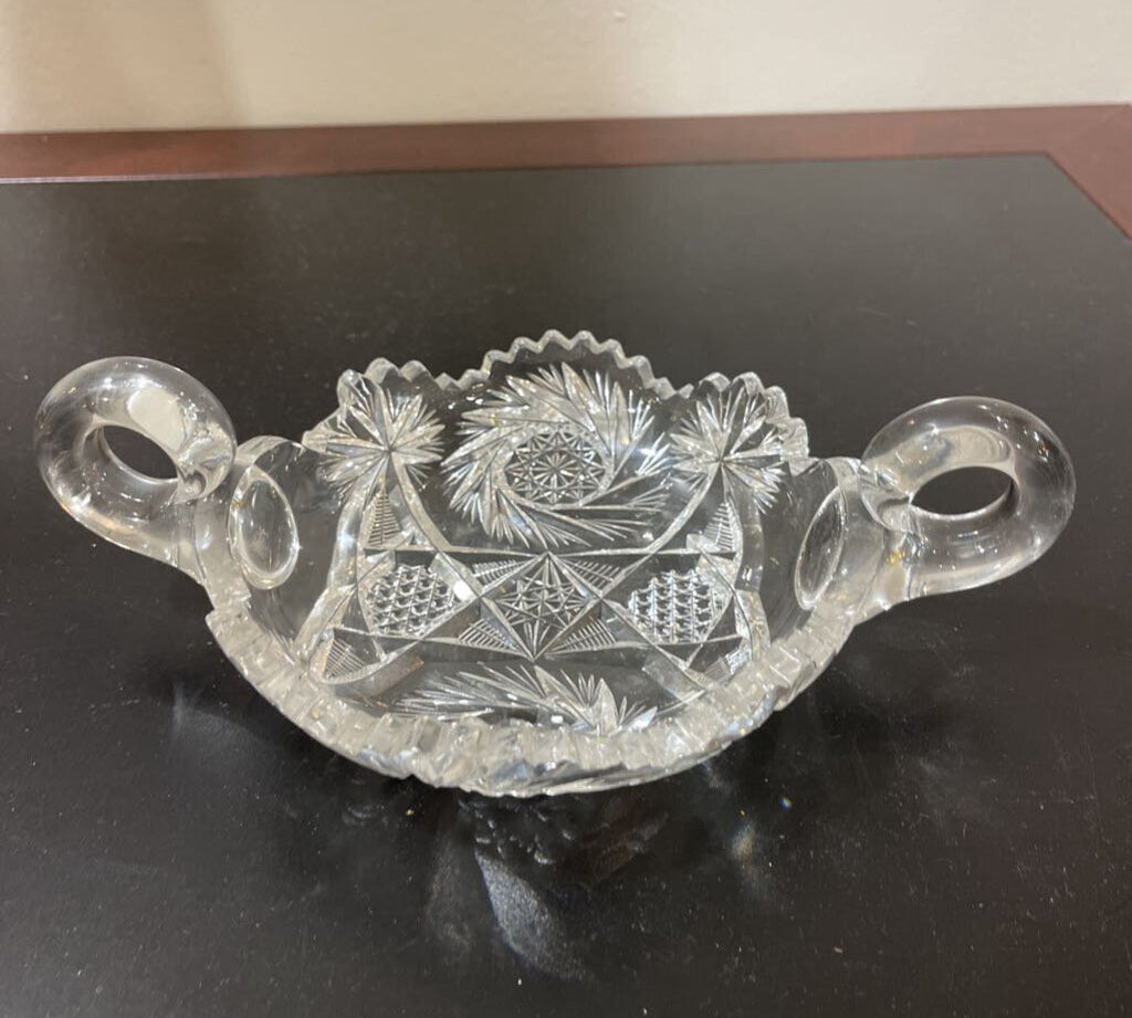 American Brilliant Cut Sawtooth Bowl w/ Applied Handles ACCESSORIES 9Wx6Dx2.5