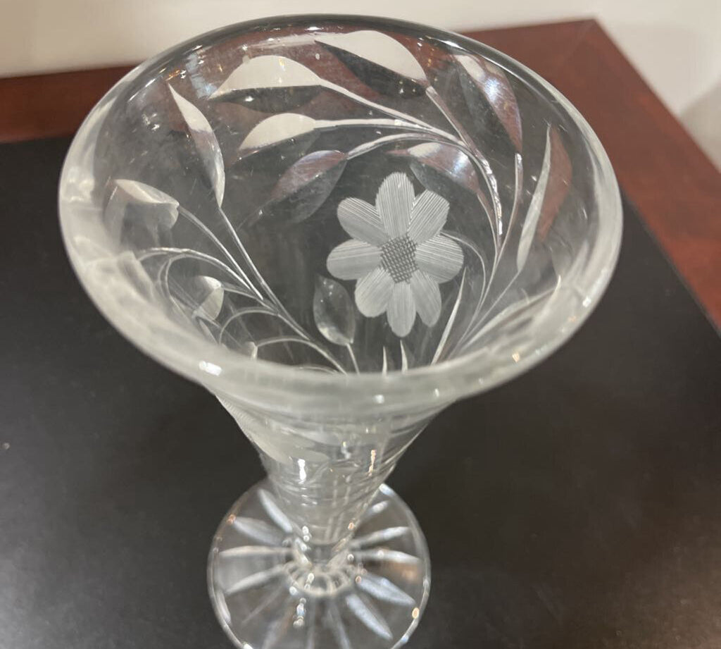 Floral Etched Glass Footed Vase ACCESSORIES 4Wx8H