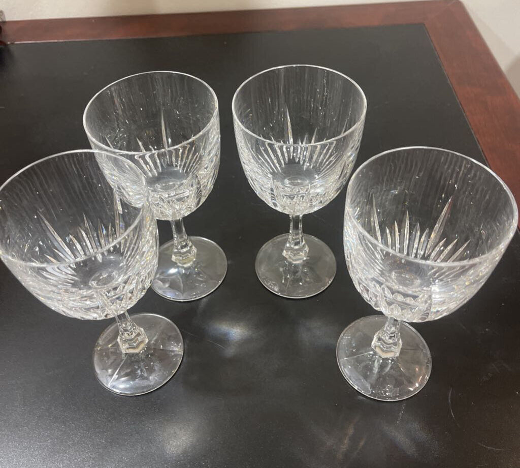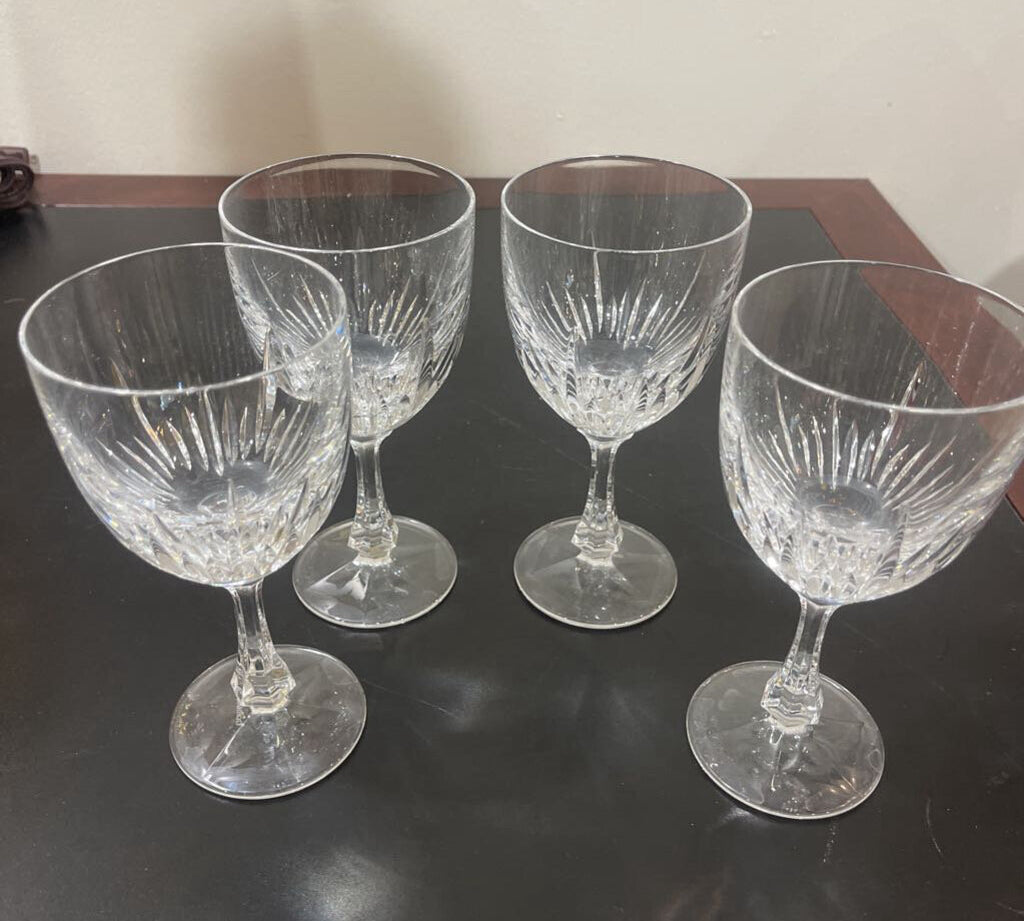 Gorham 4pc Set Hearthglow Pattern Crystal Wine Glasses ACCESSORIES 3.5Wx7H