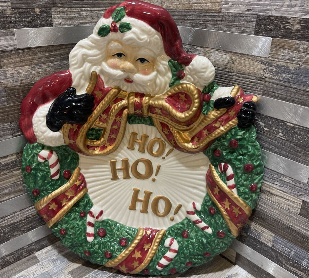 Fitz & Floyd Santa Wreath Canape Plate HO HO HO ACCESSORIES 8.5Wx10H