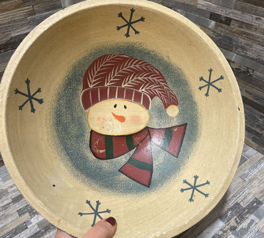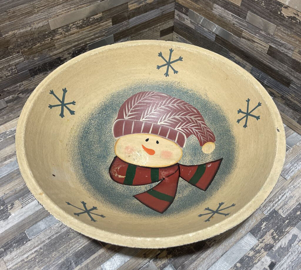 Folk Art Style Holiday Snowman Wood Bowl ACCESSORIES 12Wx3.75H