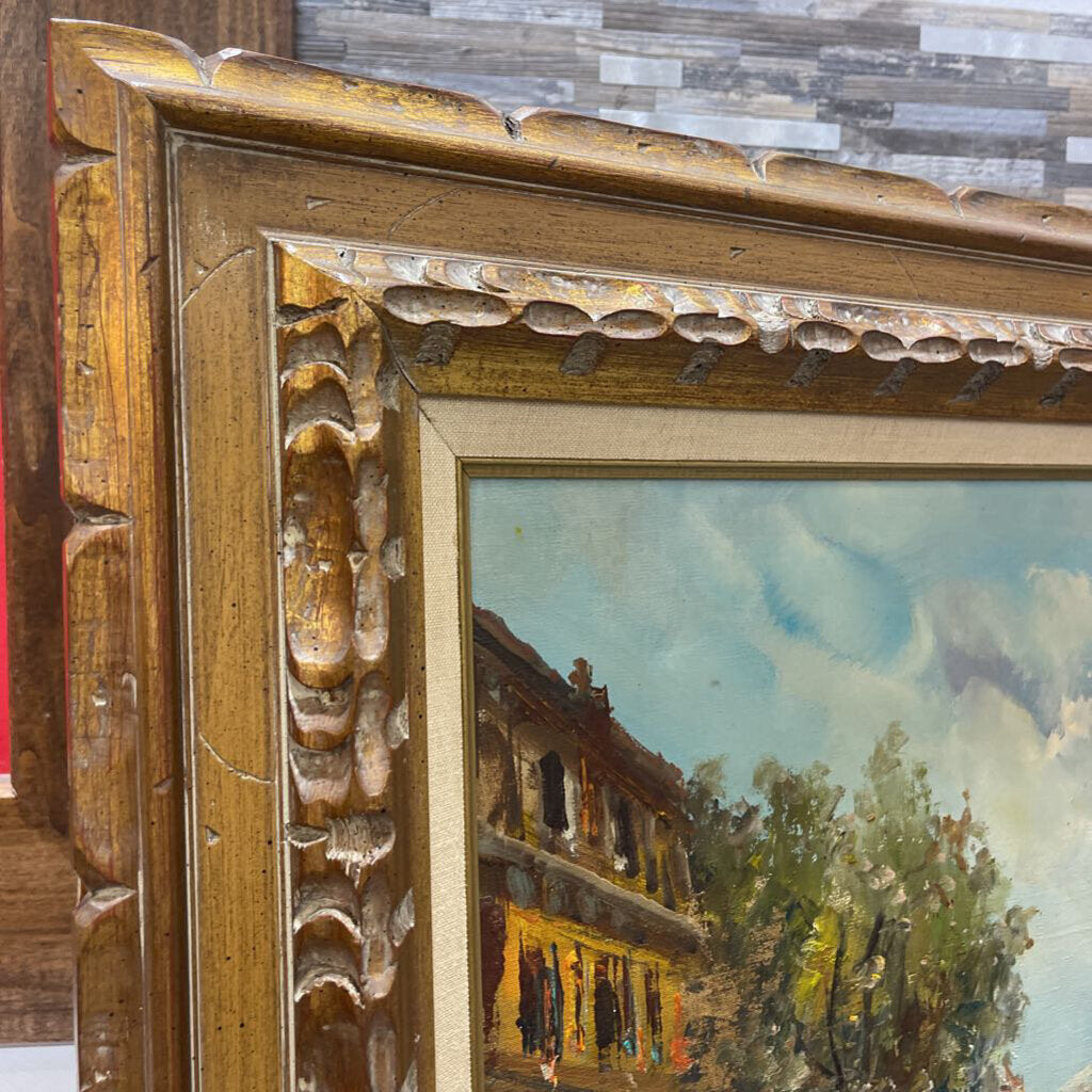 Original Oil on Canvas European Street Scene Signed ART WORK 37Wx29H