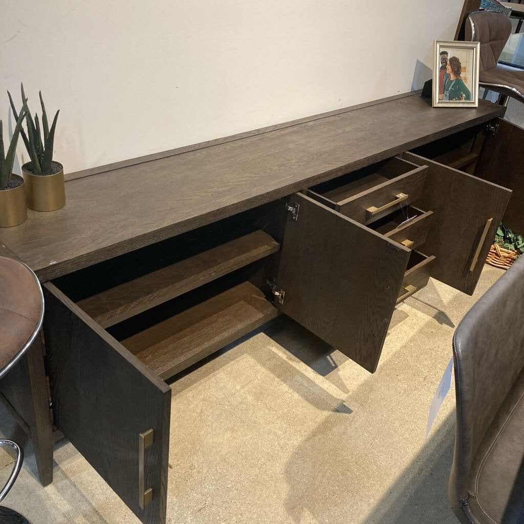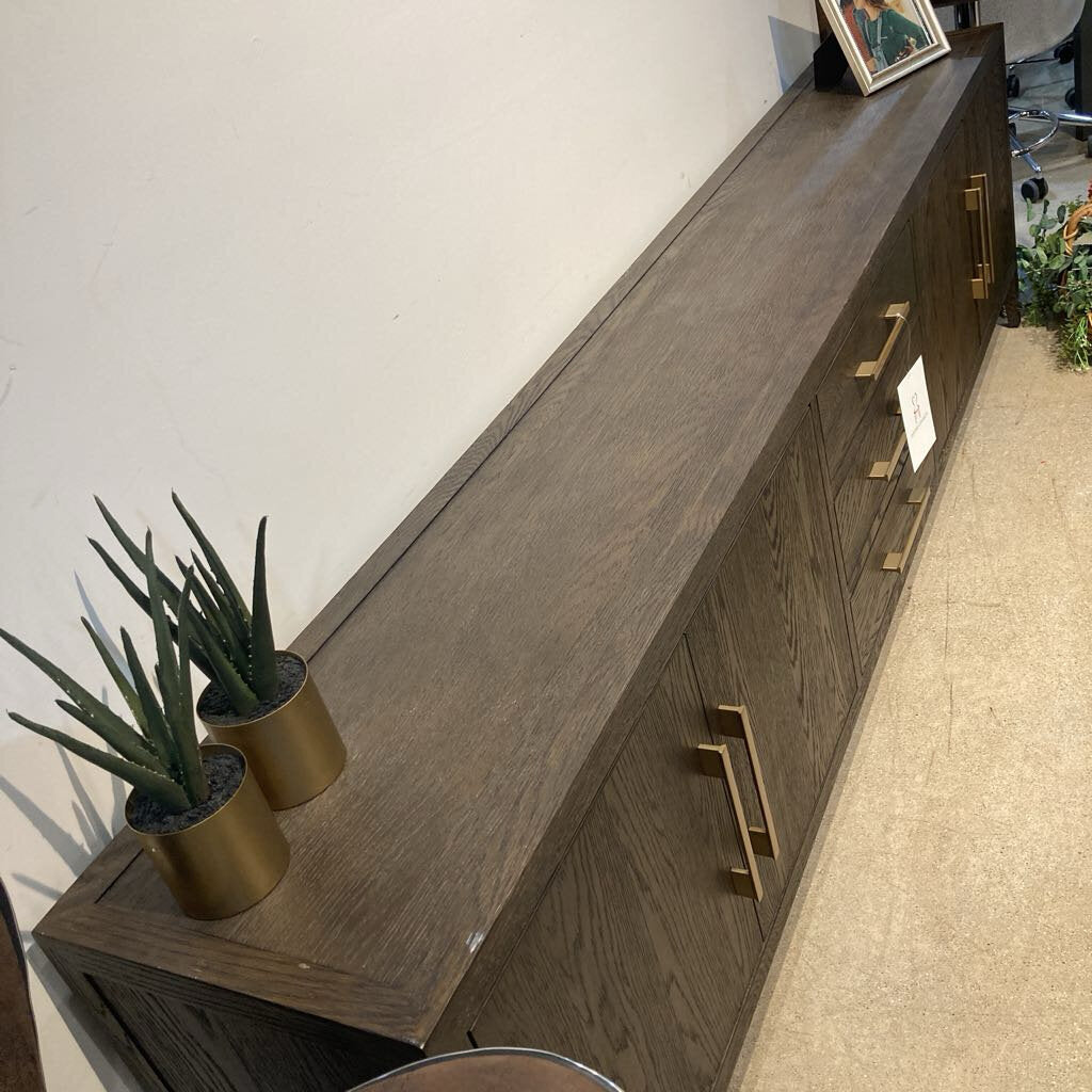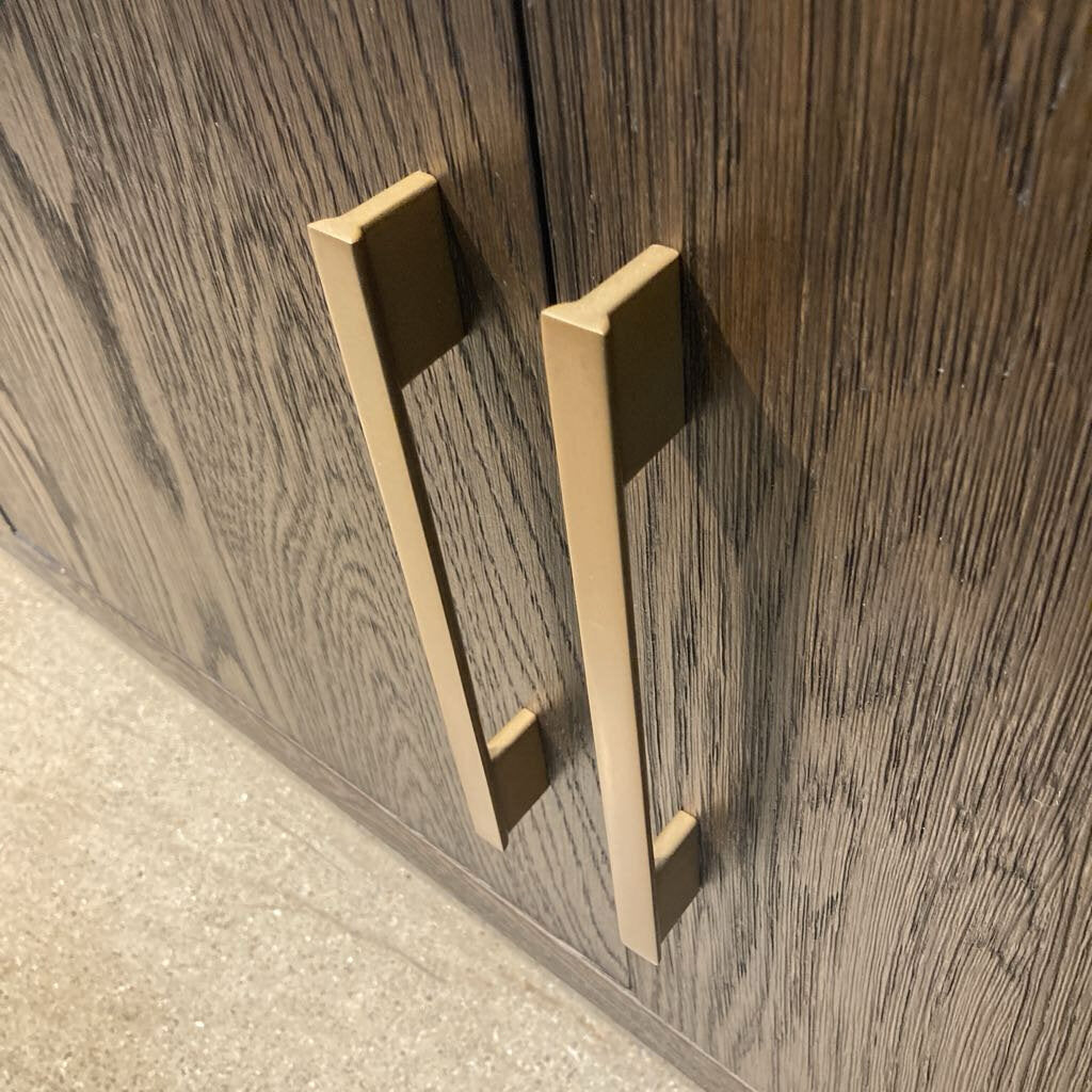 Restoration Hardware Cayden Campaign 4-Door BUFFET/SIDEBOARD Waxed Brown Oak/Brass 100w16d29h
