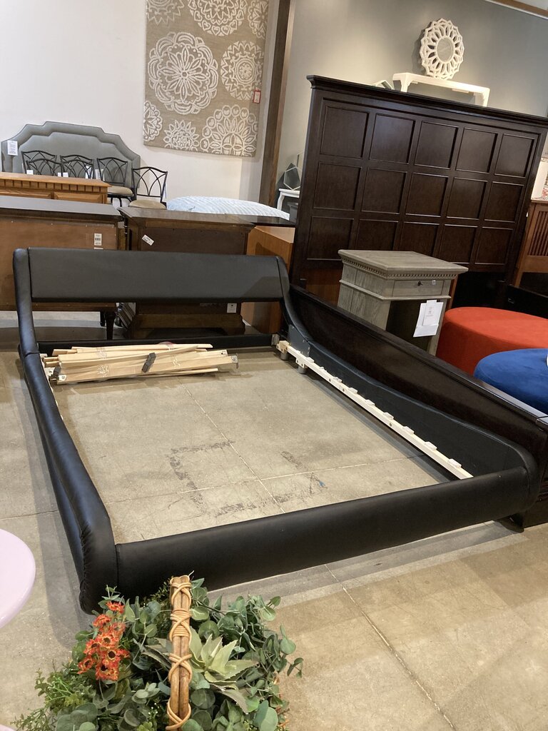 Faux Leather Upholstered Platform Queen Bed BEDS Black 65w90d25h