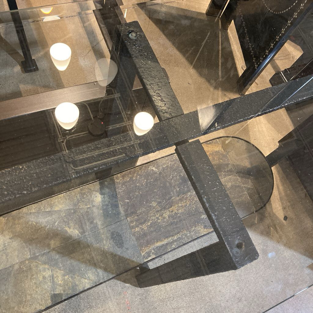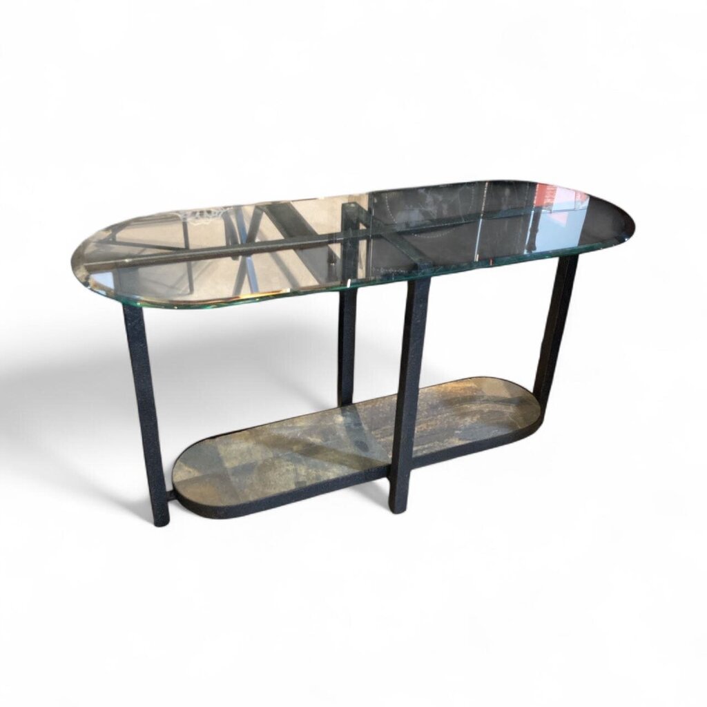 Industrial Oval 2-Tier Glass Top CONSOLE TABLE 52Wx20Dx28H