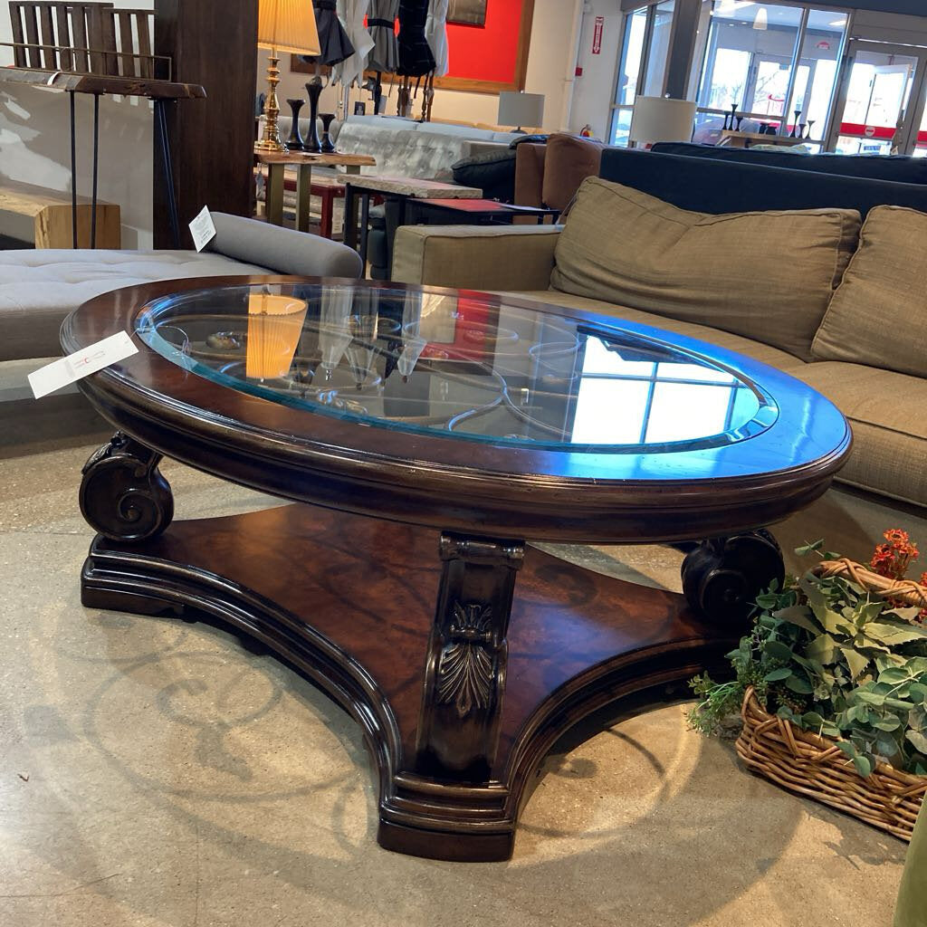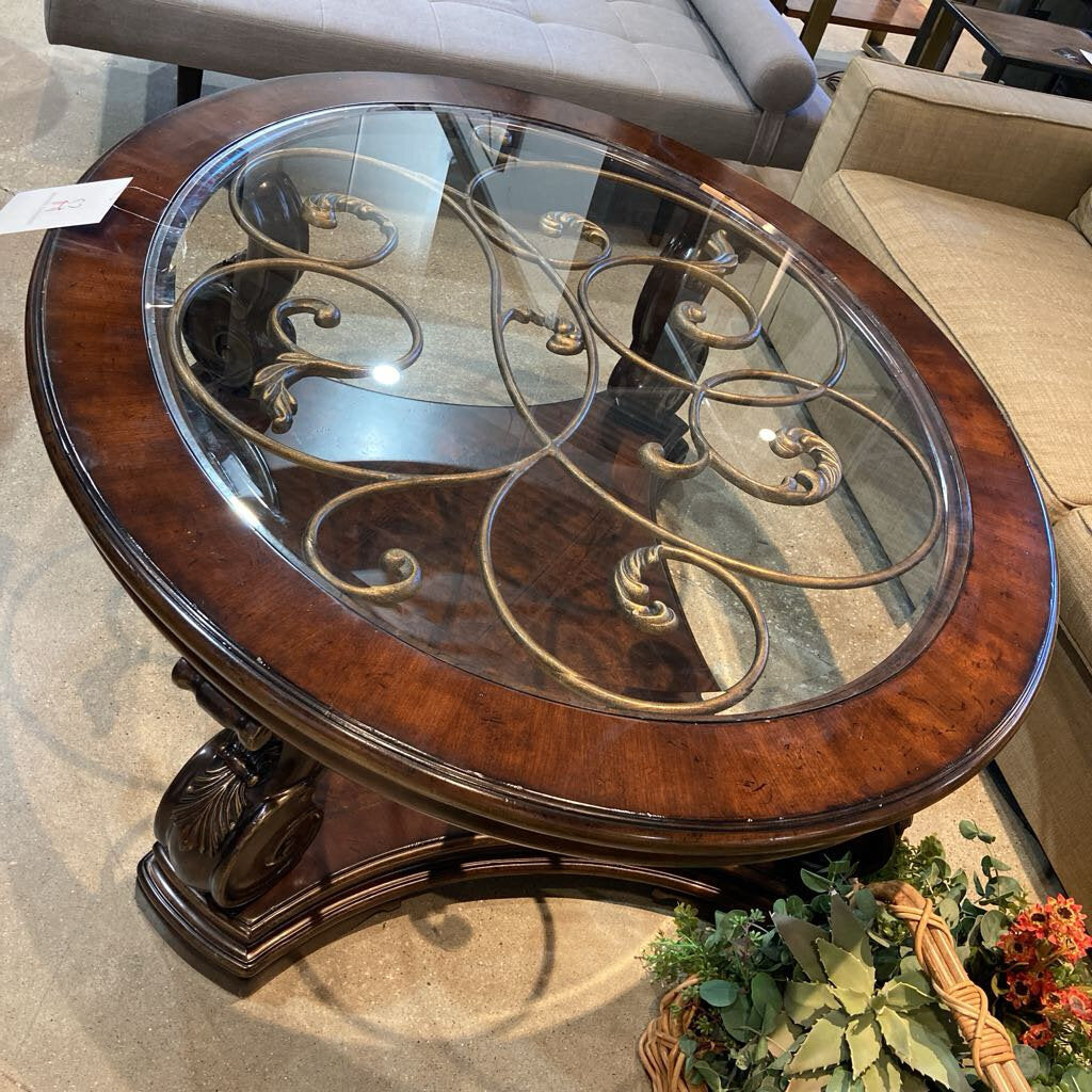 Ornate Glass Top Round Table COFFEE/COCKTAIL TABLE 55"w48"d22"h