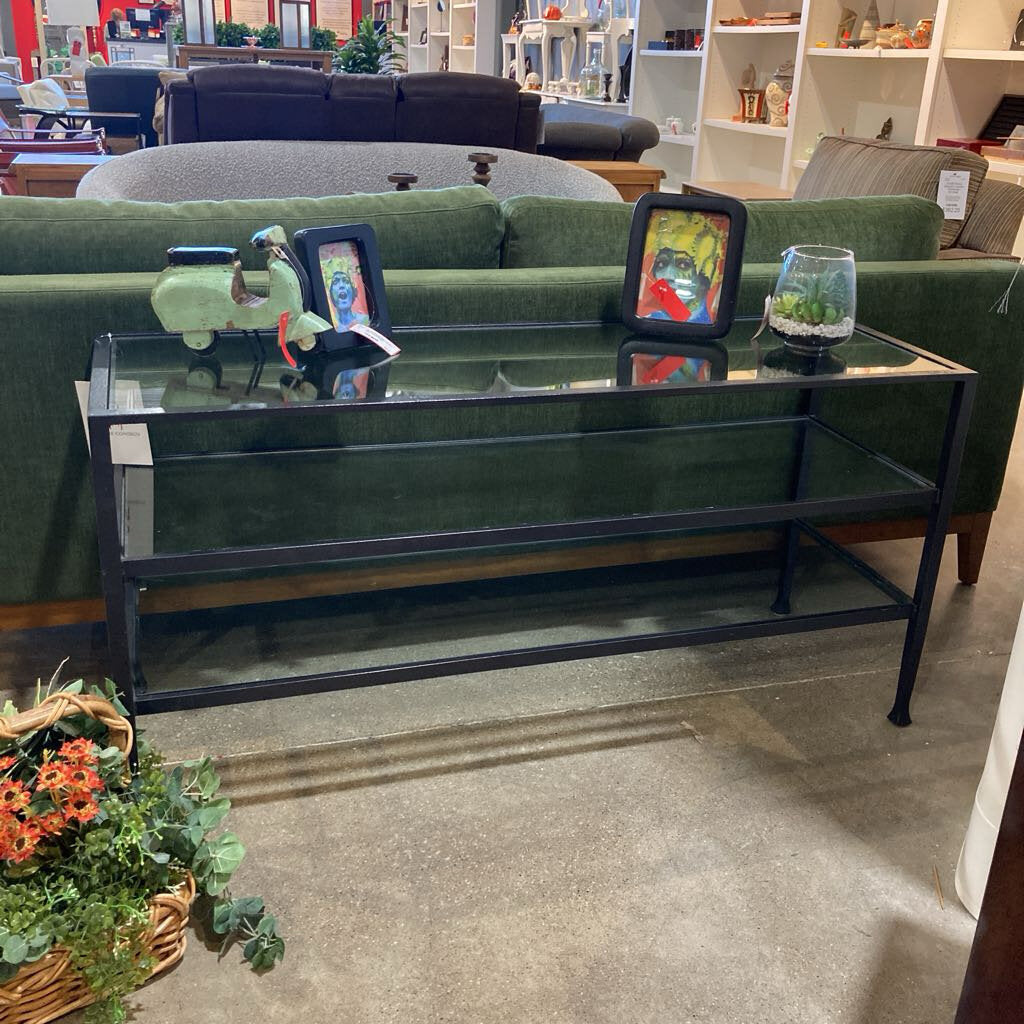 Pottery Barn "Tanner" Metal Framed 3-Tier Glass CONSOLE TABLE 54Wx18Dx26H