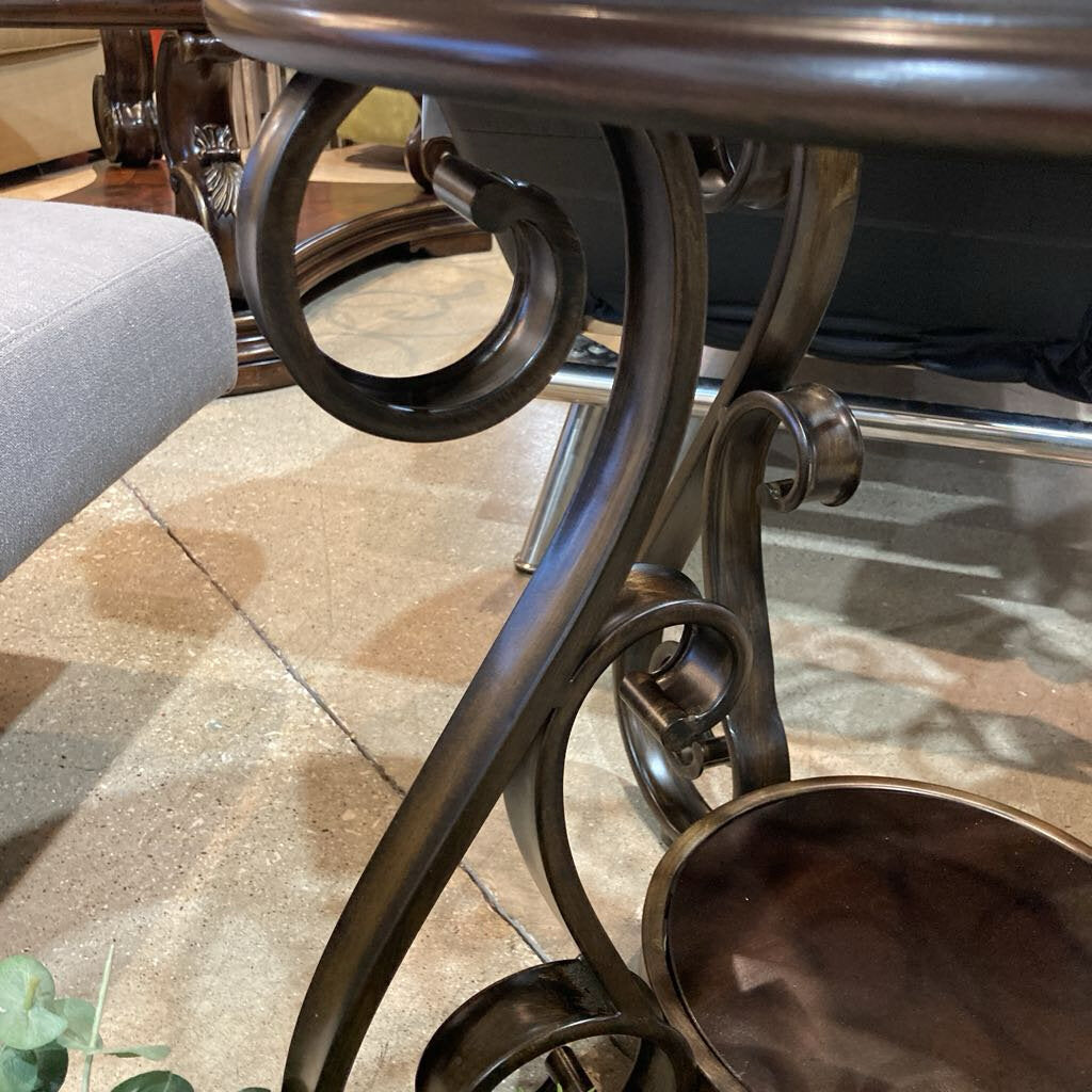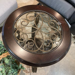 Round Scrolled Metal & Wood w/ Glass Top END/SIDE TABLE 25d24h