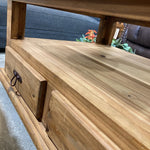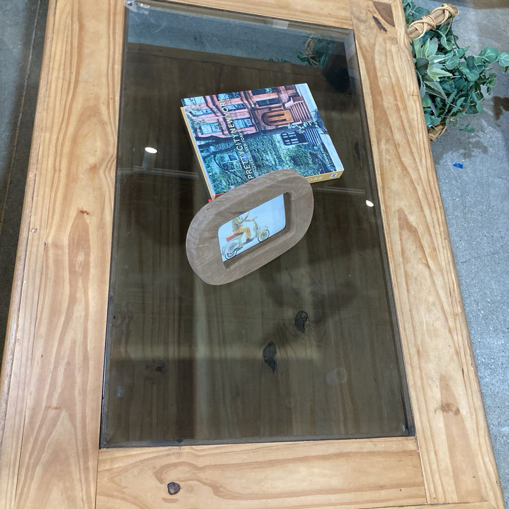 Rustic Pine 2-Drawer Glass Insert Top on Casters COFFEE/COCKTAIL TABLE 43Wx30Dxx19H
