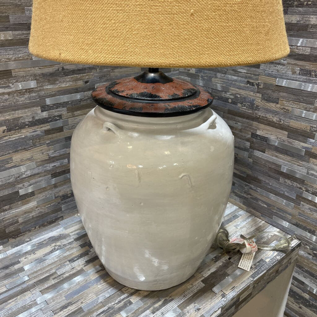Potter Barn Stoneware Base Courtney w/ Burlap Shade TABLE LAMP 17Wx29H
