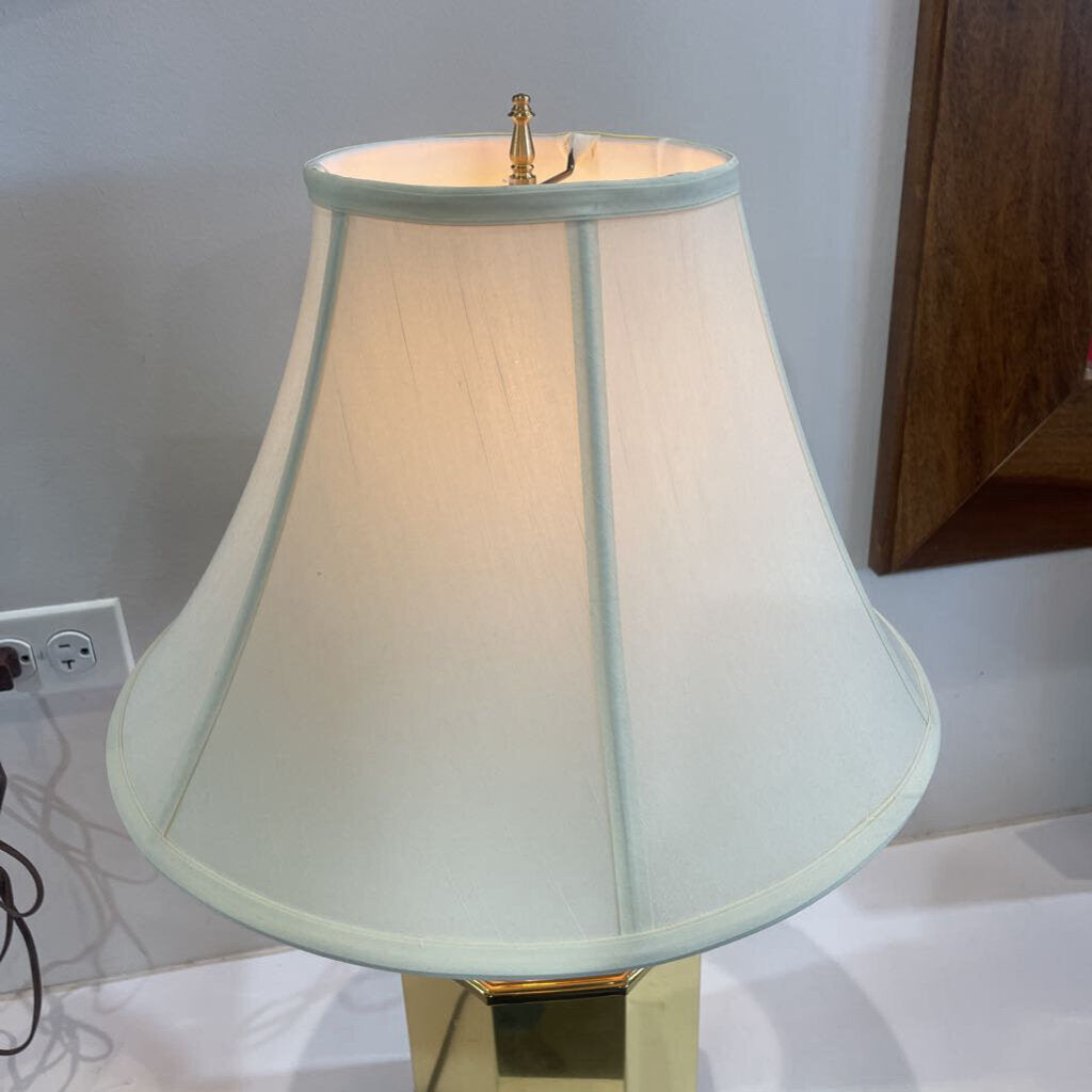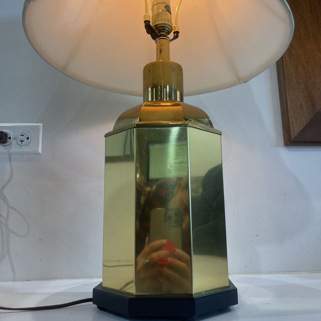 Regency Style Brass Hexagonal Ginger Jar Base w/ Flared Raw Silk Shade TABLE LAMP 15.5Wx26H