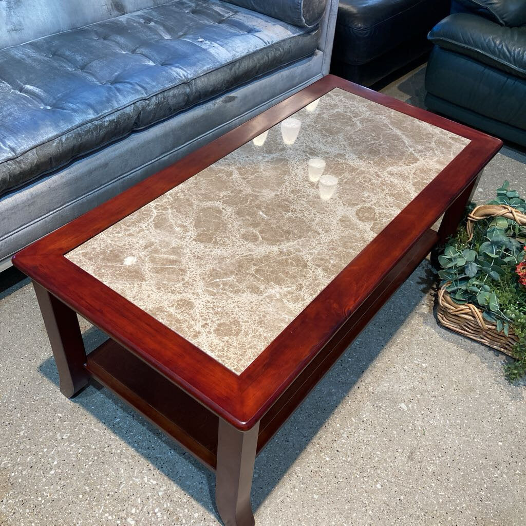 Cherry Finish Wood w/ Faux Stone Insert Top COFFEE/COCKTAIL TABLE 44w22d18h