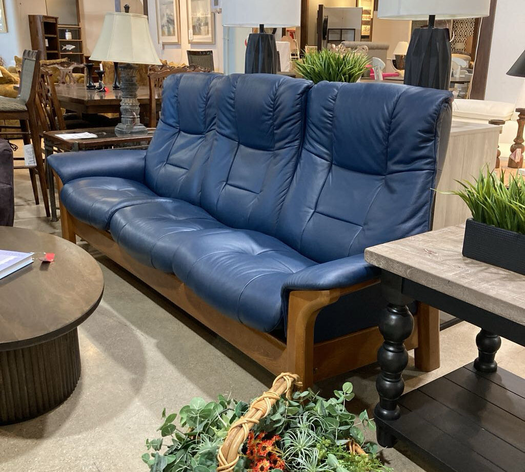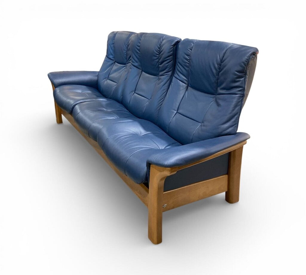 Stressless Buckingham High-Back 3-Seat SOFA Oxford Blue 92w32d40h