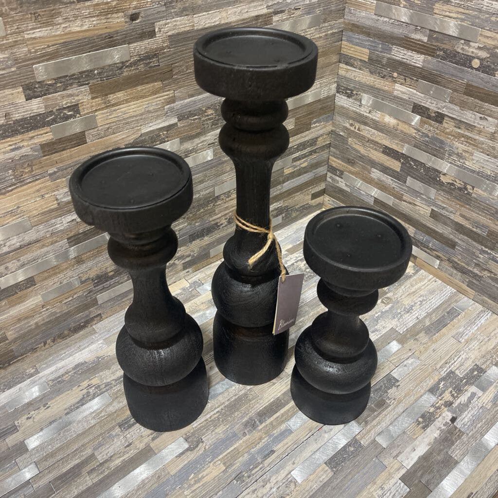3pc Set Laurel Candle Stand ACCESSORIES Black 4Wx15H tallest