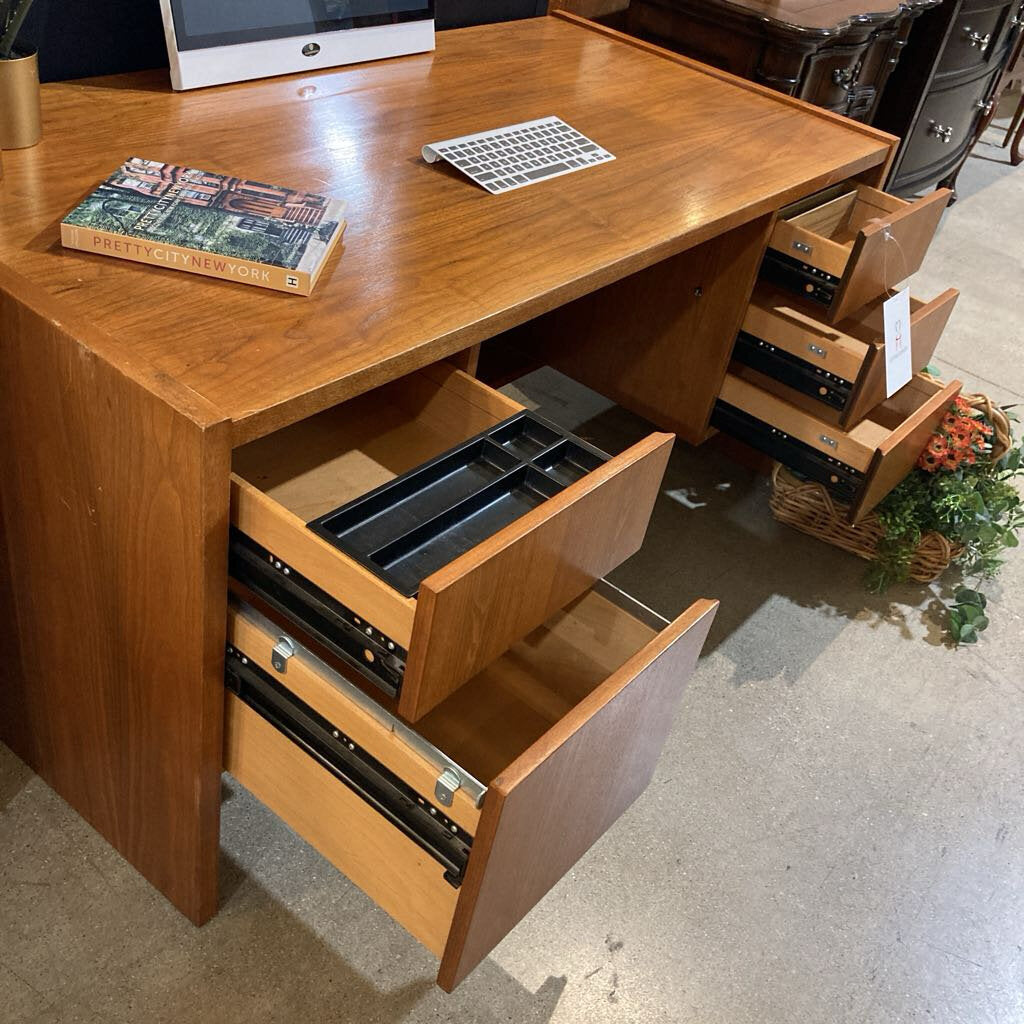 silver Vintage Danish Teak Lockable w/ File Drawers DESKS 60Wx30Dx28.5H