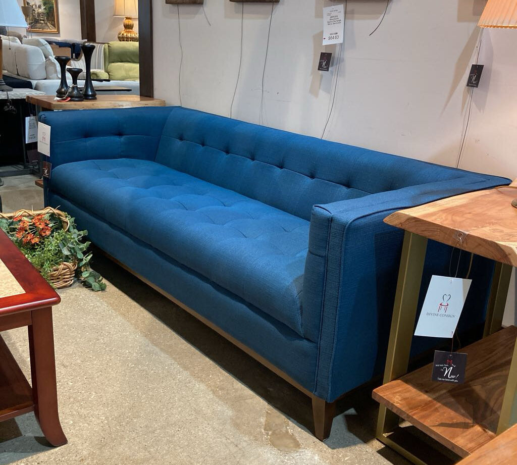 Style Line Furniture MCM Button Tufted 3-Seat SOFA Light Blue 88w36d32h