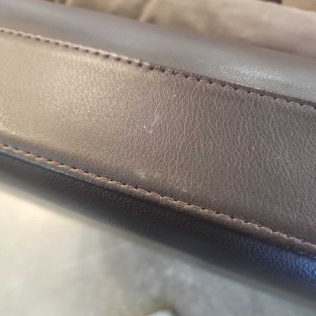 Used-Very Good: light wear on front of leather seat cushions & minor scuffs on side edges. Also has an extra cushion