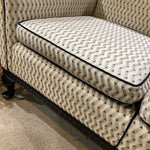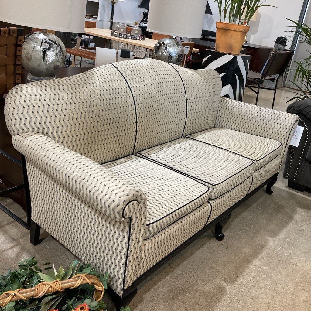Custom Upholstered Chippendale Camelback SOFA Black / Off White 74Wx29Dx38H
