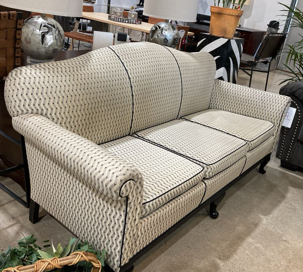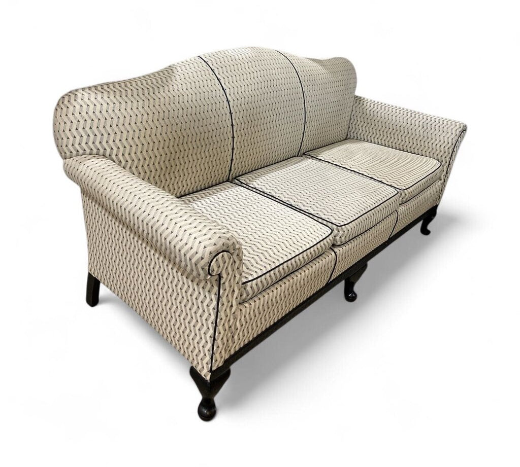 Custom Upholstered Chippendale Camelback SOFA Black / Off White 74Wx29Dx38H