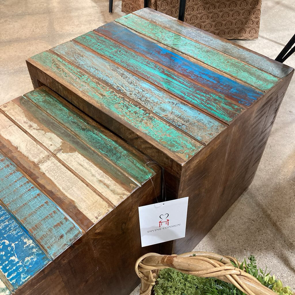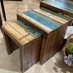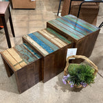 Villa2 3pc Acta Wooden Nesting Stools FURNITURE 19.5Wx16.5Dx17.5H largest
